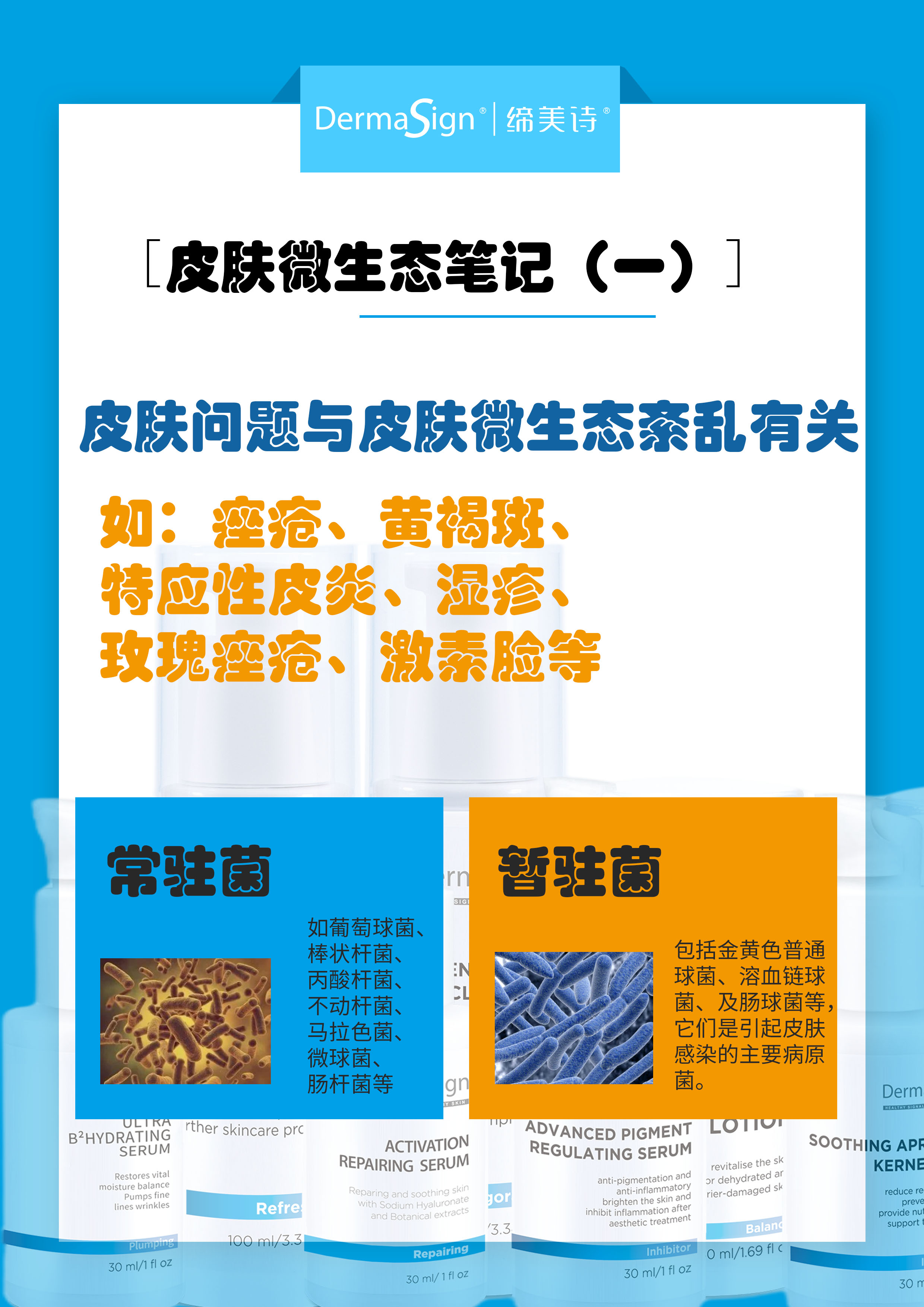 痘痘,泛红,敏感等皮肤问题要注意了!!!有可能是皮肤微生态平衡紊乱,在皮肤表面有两大菌群:有益菌和有害菌,皮肤表面的菌群失衡会导致皮肤问题的出现,例如痤疮丙酸杆菌过度增殖导致长痘痘,马拉色菌引起的脂溢性皮炎,金黄色葡萄球菌引起的湿疹,如果出现了这些皮肤问题,可以通过抑制有害菌的生长来保持皮肤屏障的正常功能。