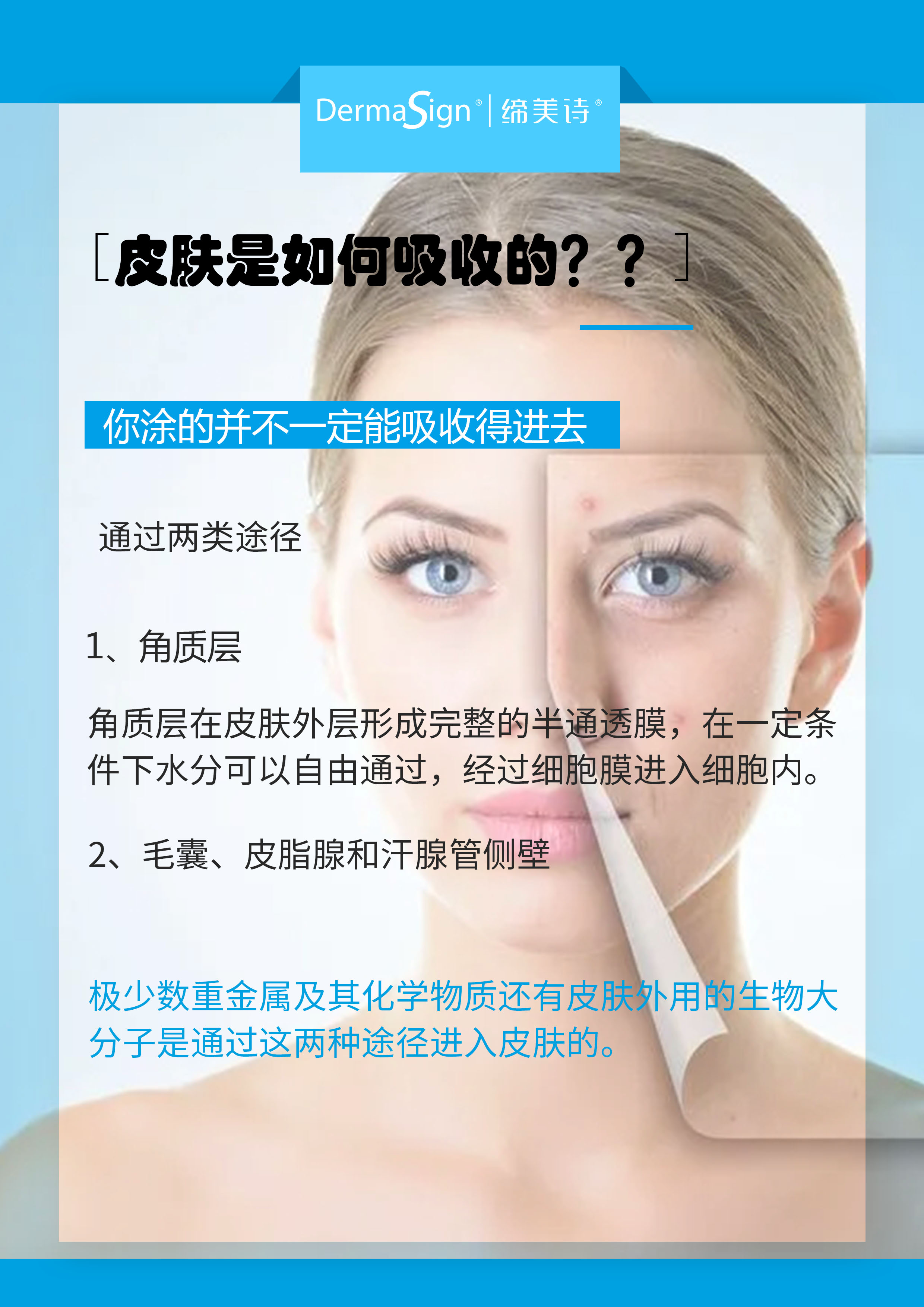 了解皮肤吸收两大途径:角质层、毛囊、皮脂腺和汗腺管侧壁