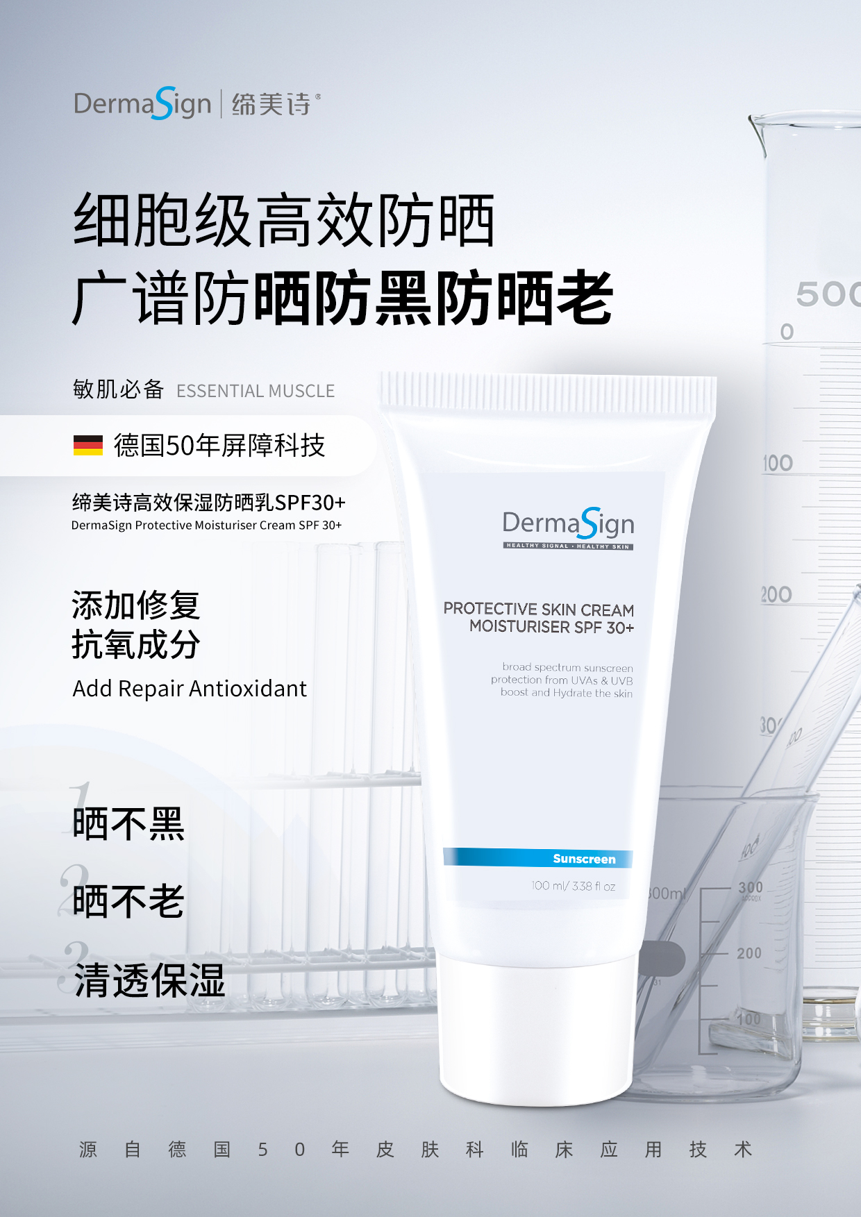 DermaSign缔美诗皮肤科医生强调在祛斑的过程中,要注意的几个事项,首先防晒一定要做好,晒是长斑的罪魁祸首。硬防晒、软防晒一个都不能少。硬防晒比如防晒衣、防晒伞、防晒袖、防晒帽、墨镜等等。那么防晒霜怎么选,DermaSign缔美诗高效保湿防晒乳SPF30+足够效果,它清透不闷,跟保湿霜一般的体验感,让敏肌人群无惧怕,并且它不假白,亲肤保湿滋养,采用广谱防晒,内含防晒因子及抗氧成分,临床验证它可以高效抵御紫外线的伤害尤其是UVA与UVB,防止晒黑晒老。